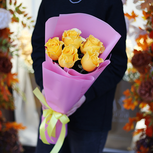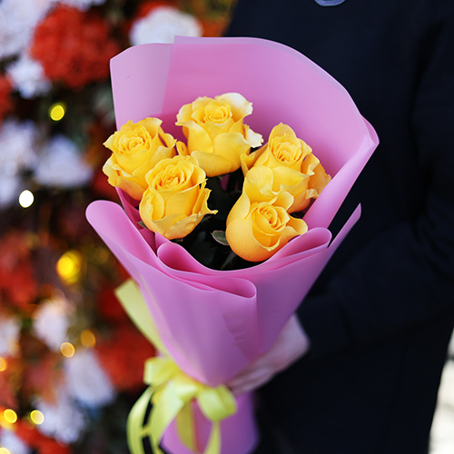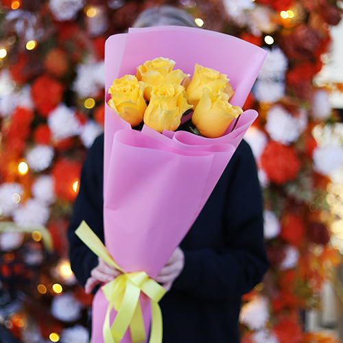 Букет "Еллоу" из 5 ярких роз (70 см)