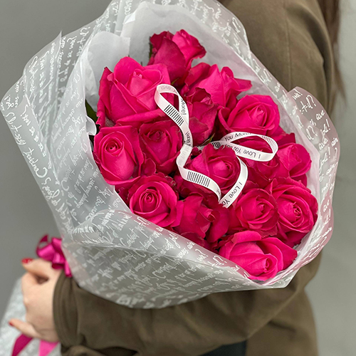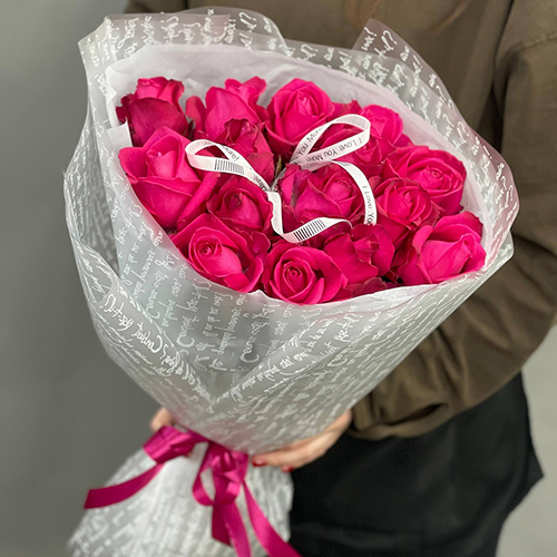 Букет "Джозефина" из 15 малиновых роз (50 см)