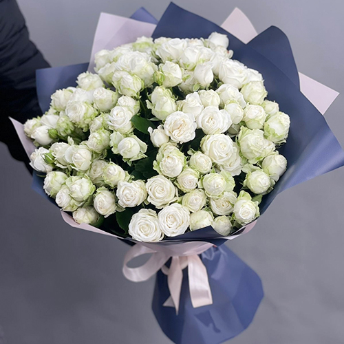 Букет из 25 кустовых пионовидных белых роз (60 см)
