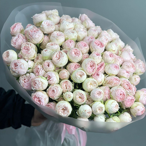 Букет из 25 кустовых пионовидных роз Мэнсфилд парк (50 см)
